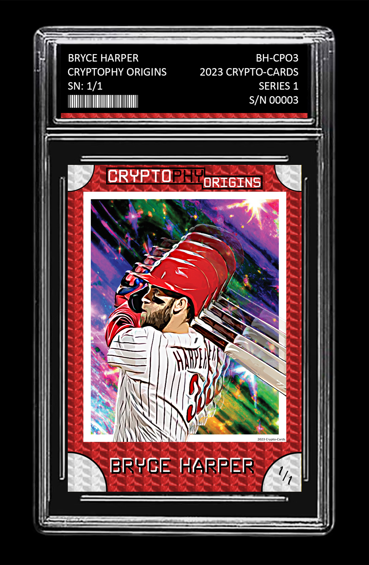 - The only physical card of Bryce Harper CRYPTOPHY ORIGINS ever created. This is hand-made 1/1 collectible card.